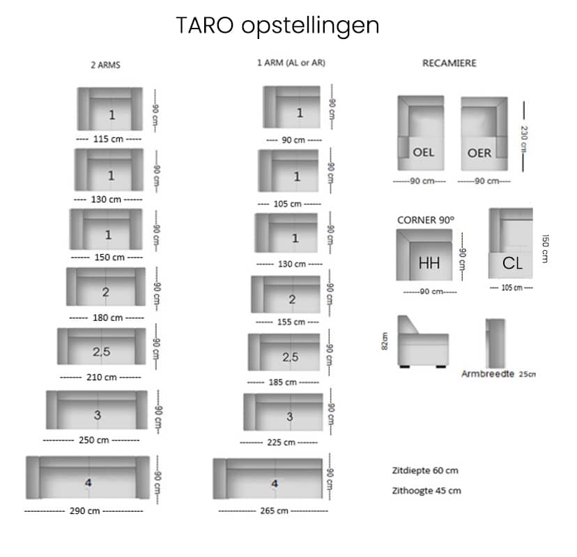 Afmetingen fauteuil TARO: